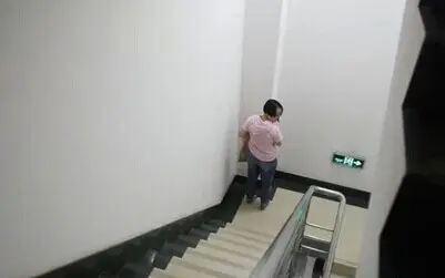 静妈在楼道里挤奶。