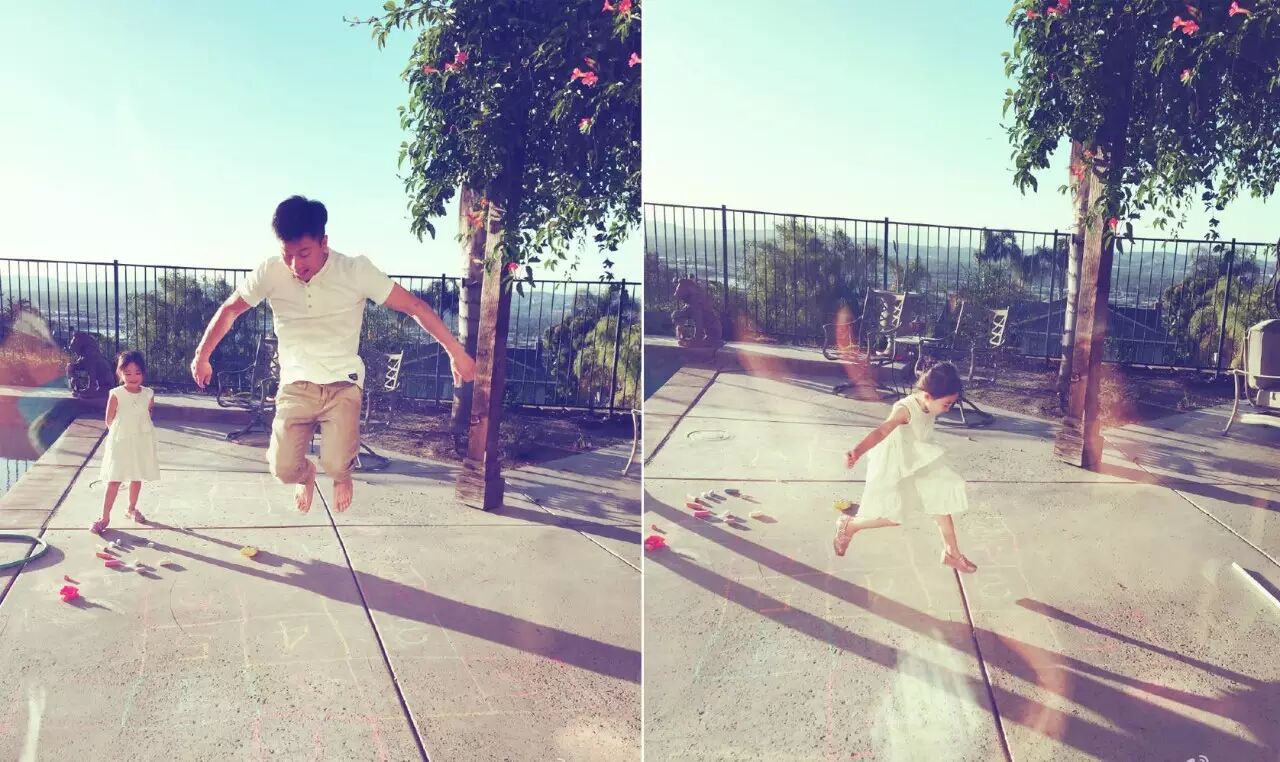 6月1日这天,李小鹏在网上晒出了与奥利一起玩耍的照片。只见奥利梳着丸子头,穿着小白裙和李小鹏一边玩跳房子一边大笑。