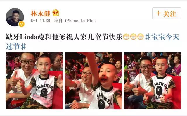 6月1日,林永健po出他和大俊的照片,原来是他陪伴儿子看了一场儿童文艺表演,享受自己与儿子之间的快乐。