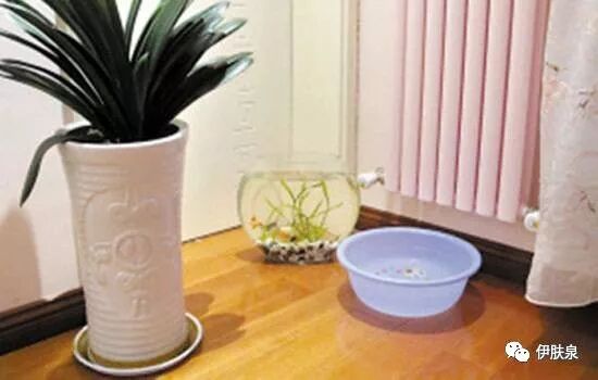 冬天太冷,有些人会开暖气,为了避免水分悄无声息的流失,建议在房间里放盆水,维持房间的湿度。如果条件允许,也可以放个小鱼缸,这样不仅可以保持湿度,也可以保持美观。