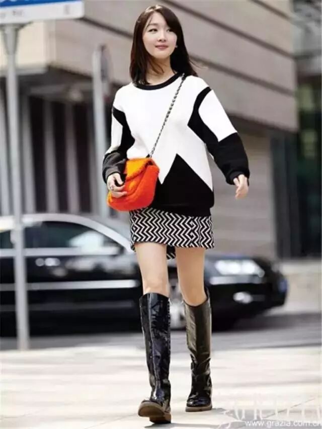 亮面的皮裙遇到卫衣也瞬间高级感up。,
