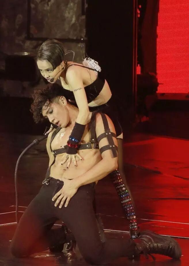 其中蔡依林骑在男舞蹈员肩上,又跟男舞蹈员跳贴身舞,期间疑摸到她的重要部位,事后蔡依林表示:“我们的动作跟走位都是有彩排过的,所以应该都还蛮专业的,没有摸到不该摸的地方。”
