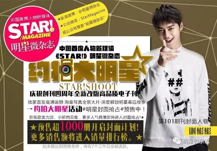 #明星预售# 一周预购支持突破1000+册明星封面即抢占成功,进入封面计划,每日12点更新销量榜。