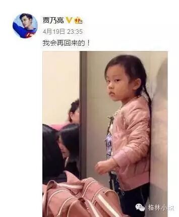 4月19日晚间,贾乃亮更新微博,晒出一张甜馨的可爱照片,并配文“我会再回来的!”照片中甜馨又露出招牌式的搞笑表情,十分逗趣。网友也纷纷留言“一定要天天晒我馨爷”“表情满分”。