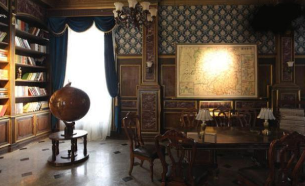 这个书房就了不得了,地球仪和后背的地图,像是船长的卧室,复古装修像是来到了中世纪贵族的书房,墨绿色和深棕的搭配,包含了浓厚的文化底蕴,在这里看书真的能够沉浸很久。说不定哪个书架里,藏着一本魔法书,或者古老的日记本。
