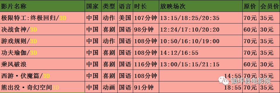 (影讯仅供参考,实际放映时间以影城现场为准!)