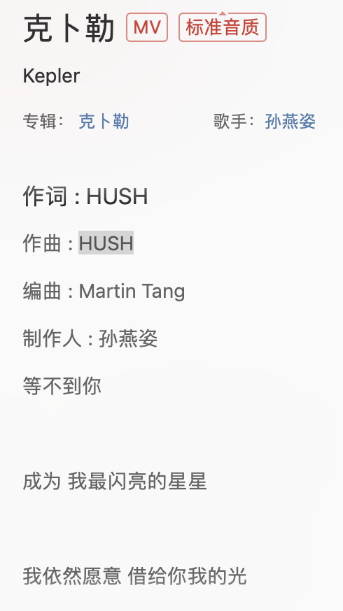 孙燕姿竟然躲起来,干了这么一件事 作家文摘 港台女星 2023-11-04 09:01:27 376 创作不易,用心坚持,欢迎请BaGua喝几杯爱心咖啡!打赏并支持本文 打赏并删除本文 画面上是一颗编号为SN1604的超新星。SN1604距离地球约13000光年,也是银河系内最后一颗肉眼可见的超新星。在1604年10月9日,他首次被人们发现,并在之后以德国天文学家约翰内斯·开普勒的名字命名。而在开普勒发现了几百年之后,这个名字出现在了孙燕姿的专辑上。【原文视频来自于B站视频《孙燕姿最被低估的专辑?华语流行音乐的隐藏神专】成为母亲后,温柔翻倍2014年的2月27日,孙燕姿发行了她的第十二章录音室专辑《克卜勒》,这也是她加盟环球唱片之后的第一张专辑。同时在专辑的制作期间,孙燕姿也实现了身份上的转变,成为了一名母亲。在经历重要人生阶段后产出的作品里,歌手往往会有意识地通过音乐的方式去告诉听众,我回来了,这是个不一样的我。在《克卜勒》中,你首先听到的就是一段无序的被干扰的电波信号。在《克卜勒》的制作名单里,你可以看到李思菘、李伟菘老师这样的老搭档。当然也有一些新面孔,比如担任专辑同名曲词曲创作的HUSH;这首歌里,HUSH的作词非常高效地完成了专辑的一部分主题的表达,这首歌既像是歌手孙燕姿写给歌迷的重逢,也像是母亲孙燕姿写给未出生孩子的相遇。而当你听到“藏在众多孤星之中,还是找得到你”这样的歌词时,你才会发现,不管是宇宙尺度下行星的交汇,还是日常生活里的重逢,温柔地去看待,遇见本身都像一场戏。《克卜勒》中的歌曲是从近千首Demo中挑选出来的,而这些歌曲尽量贴近孙燕姿的生活。当一个出道十几年的歌手有机会以一种近距离向听众传达自己的生活时,我想她一定会选择一些特殊的时刻。首先就是演出开始前,在后台紧张地准备。在《渴》的intro部分,我们可以听到正在调音的乐器,工作人员的咳嗽,还有台下观众的掌声。当然最重要的就是在那个加速处理过后,深吸一口气的呼吸声。演出现场是绝大多数歌迷距离燕姿最近的时刻,但我想绝大多数人也看不到在幕后忙碌的场景。这个呼吸可以看作是即使发生了几百次,每一场演出前还是会不自主去做的肌肉记忆。然后镜头一转,又是一个对乐迷而言陌生的片段,那就是当人潮散去,聚光灯落下之后的安静。而只有深切感受过喧闹和落寞的人,当他卸下了关于得失的考量时,才能读懂安静中的渴望。青春疼痛文学的重击在华语流行音乐的企划中,为了保证专辑的统一性,制作人往往会控制每首歌的能量保持在一个趋近的值,就像维持均匀的呼吸一样,这是最不会出错的方法。当然,如果每一张专辑的所有歌听上去都一样,那我想未免也太无聊了吧。所以,不妨就在稳妥中寻找些不一样。就像下面这首歌一样。《尚好的青春》我想分享的其实也是出现在歌曲开头那句迫不及待想抓住听众耳朵的台语唱词。在之前的文章里我经常说方言作词的作用,不管是韵律上特有的美感,还是因为地域性而产生的特别,都使得身处普通话语境下的听众耳目一新。李思菘、李伟菘老师也从来不会滥用方言作词的魔力,比如下面这段,标志华语乐坛千禧世代的民谣。而在《尚好的青春》中,这种魔力凝练成了这首歌的情感概括,就是一个跟随视角下的情书,这份沉甸甸的情感可能永远都无法传达出去,或者说,当你真正想表达的时候,那个构成你青春的人,可能已经是若即若离了。比整首歌的手风琴和吉他伴奏更具有叙述性的,我想就是孙燕姿娓娓道来的演唱中书写的那一份干净的释然。而也正是这份释然,才给前面存封于心底的情书真正画下句号。高负荷打工人的慰藉我们前面提过,《克卜勒》是一张在平稳框架之上创造不同的专辑。如果说专辑的A面还是那个我们熟悉的孙燕姿,那我想它的B面就充满了惊喜。比如全专中我最喜欢的《银泰》,负责这首歌编曲的邓志明老师也是孙燕姿的老搭档了。而在《银泰》里,他为歌曲放置了一个足以展现都市生活冰冷且沉闷秩序的电子底鼓音色,加上反复的三拍节奏,从节奏组上就构成了一座巨大城市,让人窒息的瞬间,浑浊的空气,拥挤的人群望不到头的车流。而孙燕姿在主歌部分略显疲惫的声线也在进一步强化这种氛围。歌名中的银泰是位于北京市中心的一座大楼,它放在高楼林立的北京或许不是最特别的建筑,但毫无疑问的是,它象征着是无数漂泊异乡的人最初来到这座城市时,怀揣着关于美好生活的幻想具象,而这也是支撑着很多人走下去的希望。在歌曲处理方面,伴随着弦乐渐强,伍家辉老师在副歌段落赋予了一种截然不同的气质,它像是对主歌部分沉重感情的一种宣泄般的表达。而对我个人而言,会想到一个画面,就是当你拖着疲倦的躯壳走出摩天大楼,走在人行天桥时,当你在出租房一个人吃了晚餐的时候,望向脚下的车水马龙,看向窗外的十里繁华,在心里会闪烁的那个瞬间,那个约定好一起去北京的人,还有年少时那句懵懂无知的一起去北京好吗?其实当我第一次听到《银泰》这首歌的时候,我还没有去过北京,在此之前,我以为北京就和其他我去过大城市一样,高效快捷冰冷。当我第一次去北京的时候,因为图便宜把酒店订到了比较偏的地方,在天通苑附近,熟悉的朋友应该知道,这里住着相当多来北京的外地人。我清晰的记得有一个夜晚,出门时看到路边的