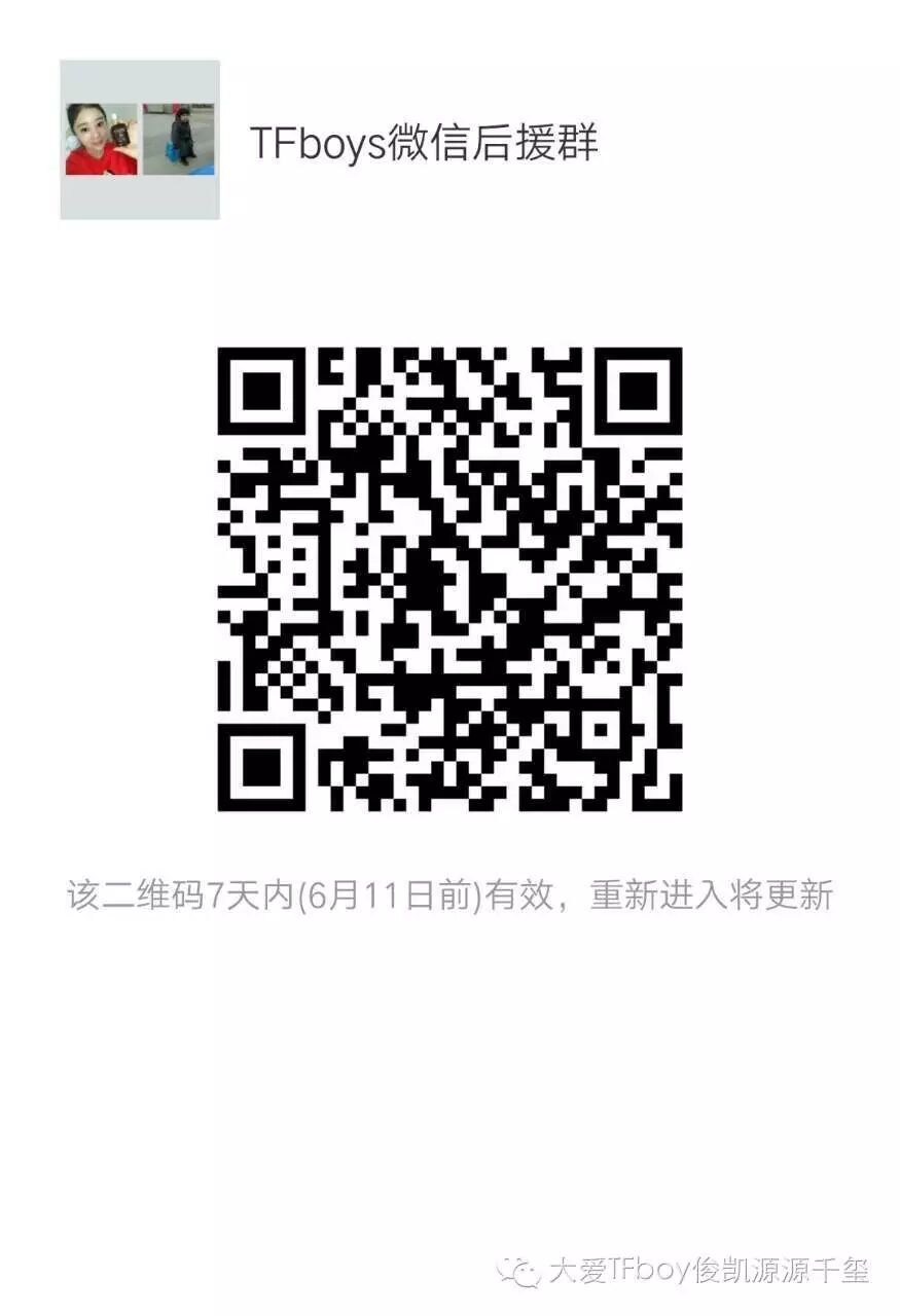 终于等到你,还好我没放弃,扫描以下TFBOYS微信后援群的二维码,互相分享交流,获取更多三小只的资讯,同时和其他的四叶草们一起成长哦~