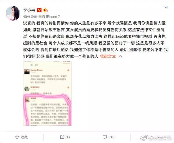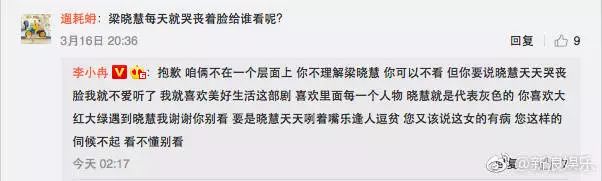 大家有没有发现,老一代的女演员真的很没有在怕粉丝。好啦,李小冉也没有老一代,意思就是和现在的小花小生不一样,现在的流量们,基本都是看粉丝的脸色在做事,粉丝有一点意见动不动就撕经纪人,骂公司,胡一天工作室甚至发声明,胡一天听取粉丝意见接戏。李小冉这一代的演员们可完全没有把粉丝这种事放在心里,她说