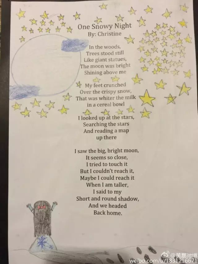 多多自己创作、翻译、并配图的英文诗,这英语水平,让不少在外企工作的网友都自愧不如。