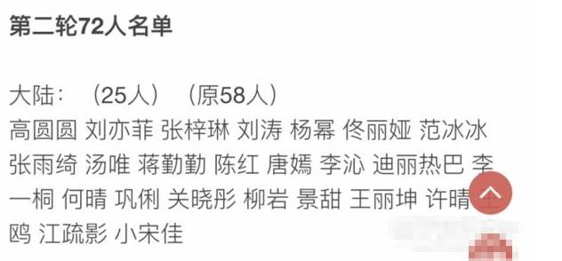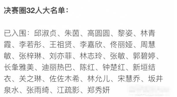 第二轮比拼后,已经有28个女星已经确定入选决赛32强,名单如下↓