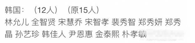 韩国:(15人)