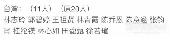 台湾:(20人)