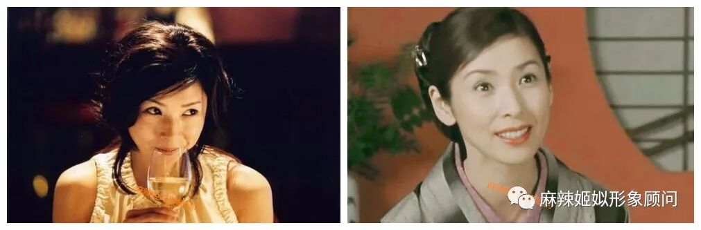 我们身上的柔美感,可以来自穿衣风格,也可以来自色彩特征,黑木瞳的柔美感,跟穿衣风格没有一点关系,她的这份柔美只是她的色彩特征在影响着,所以发型与服饰上,挺柔美的元素,放到她身上反而不太好看,而直线感很明显的右图发型,放在黑木瞳的身上是不是显得她气质很好?