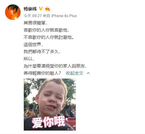 只有杨宗纬依然冷情疏远,只上和唱歌有关的综艺、宣传很少,微博也只有37条