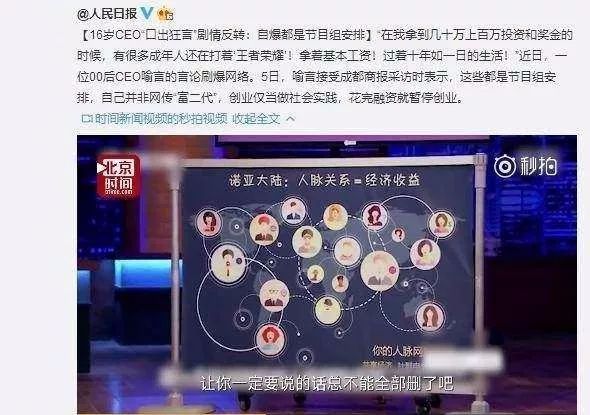 不久前由撒贝宁主持的《放学别走》,因为一个16岁女孩的“豪言”而受到质疑。在节目中,一个16岁的美女CEO扬言,痛斥成年人的生活习惯,说他们每天沉迷手机游戏浪费时间。此外她还说自己拿着上千万的融资进行创业的时候,绝大多数的年轻人还在打着王者荣耀,拿着基本工资,过的是苟且的生活。