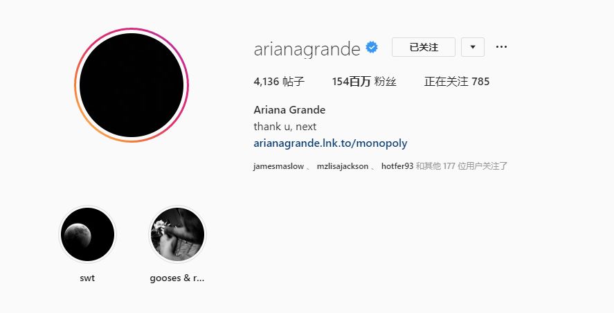 好不惊喜,因为Ariana目前拥有一亿五千万的Instagram粉丝,她就是流量明星中的佼佼者,不仅有实力而且有人气。