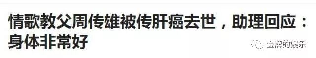 娱乐圈中总是会出现各种不靠谱的流言蜚语,更是有很多明星经常被传去世,比如说赵本山就经常躺枪,而在前些日子,歌手周传雄更是莫名被传爆瘦20斤因为肝癌去世,因为说的有板有眼,所以也是骗了不少网友,好在之后经纪人即使出来辟谣,才避免了一场乌龙。