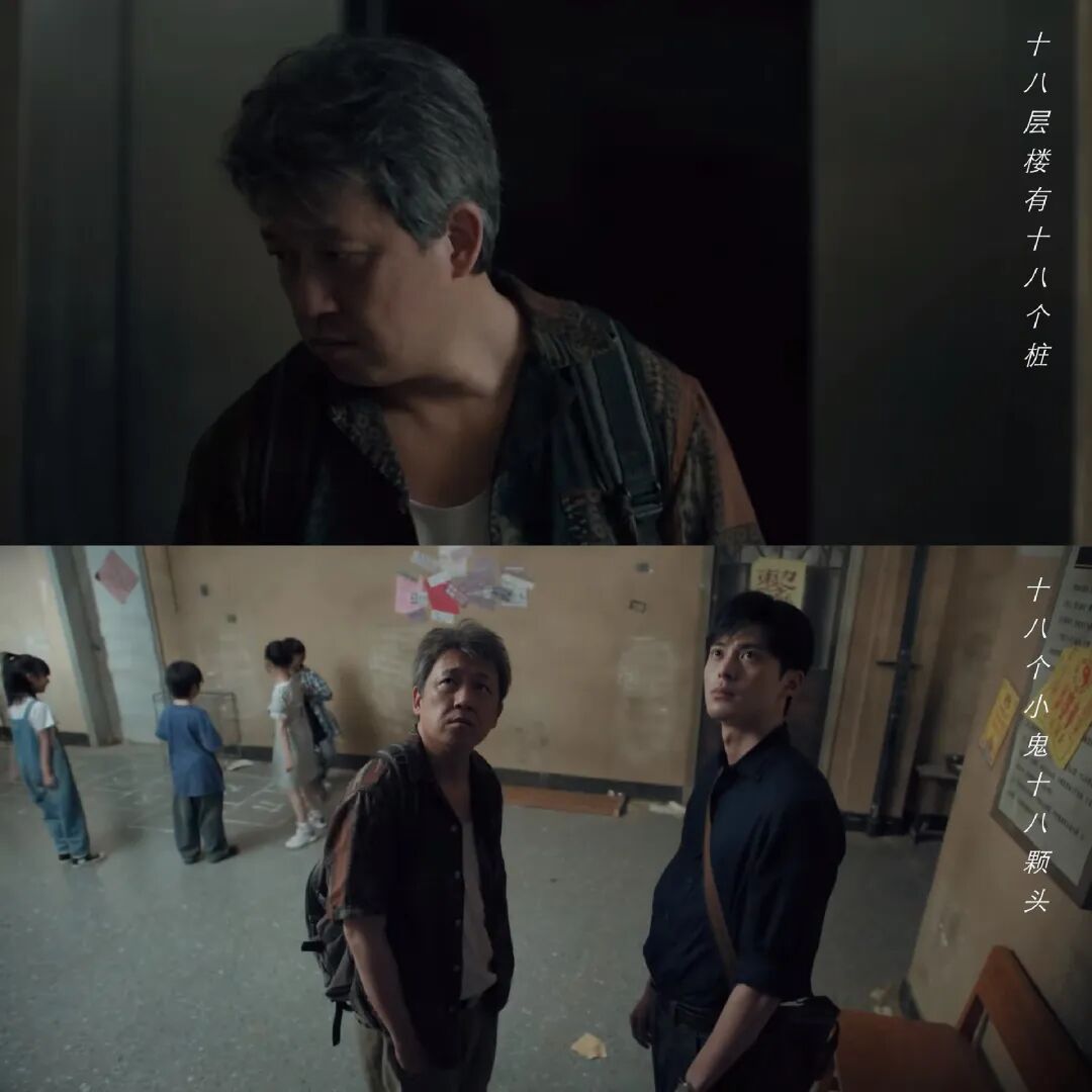 剧中的悬疑不是直白的,会更耐琢磨一点。比如失踪事件刚发生,就有人故意散播那首童谣:“元龙里,十八楼,十八个小鬼十八颗头”。看起来是装神弄鬼,像是要利用封建迷信掩盖事实,实际上是用这种方式引起人的注意。这首童谣18年后还在楼里流行,这也就证明了,有人在努力,不让这件事尘封。