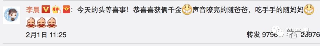 不仅描述了产房的温馨场面,更是爱心爆棚的表示“现在就开始担心两个小天使干爹疼不过来了~”期待日后双胞胎上快本哦。