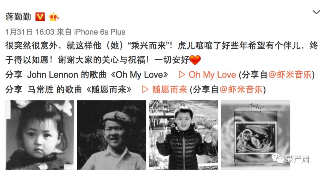 除了这两天宣布生子的,前几天还有蒋勤勤宣布怀二胎。