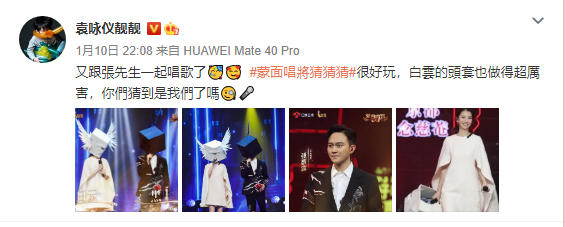 1月10日,袁咏仪和张智霖合体参加综艺《蒙面唱将》。
