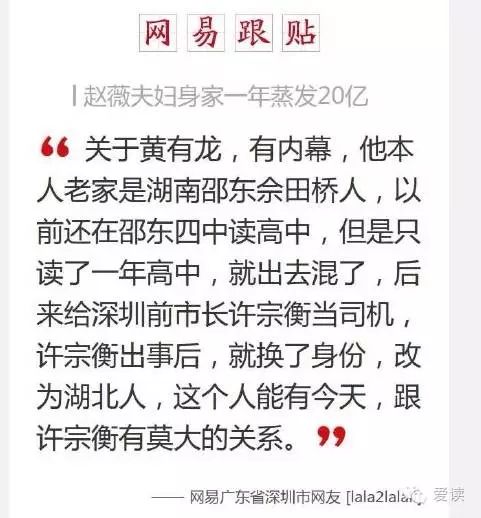 凤凰网又放猛料:赵薇的老公黄有龙(邵阳邵东籍),曾是某落马高官的司机,背景神秘。