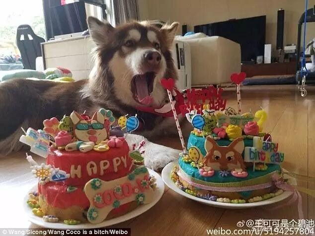 本周一,这个世界上最养尊处优的狗,度过了自己的第二个生日,王思聪特别为其准备了奢华的生日派对以及两个蛋糕。为了表示庆祝,王思聪用气球在他的豪车上拼出了Cocowang的名字。