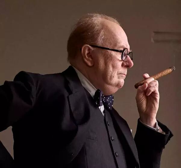 《这个杀手不太冷》里的警察、《惊情四百年》里的爵士、《哈利波特》里的教父、《蝙蝠侠》里的探长,加里•奥德曼扔掉帅气削瘦的面庞,化身为“臃肿的猪”、“肮脏的骗子”,他用高高的礼帽、一根又一根雪茄、一杯又一杯烈酒作道具,配合着经典的“V”字手势,这让我们完全相信:他就是丘吉尔。