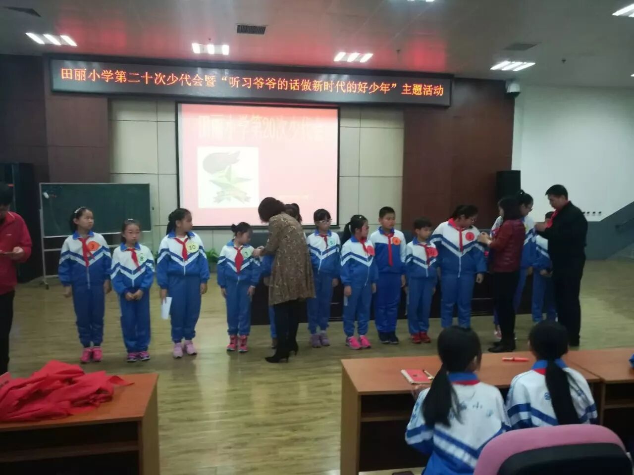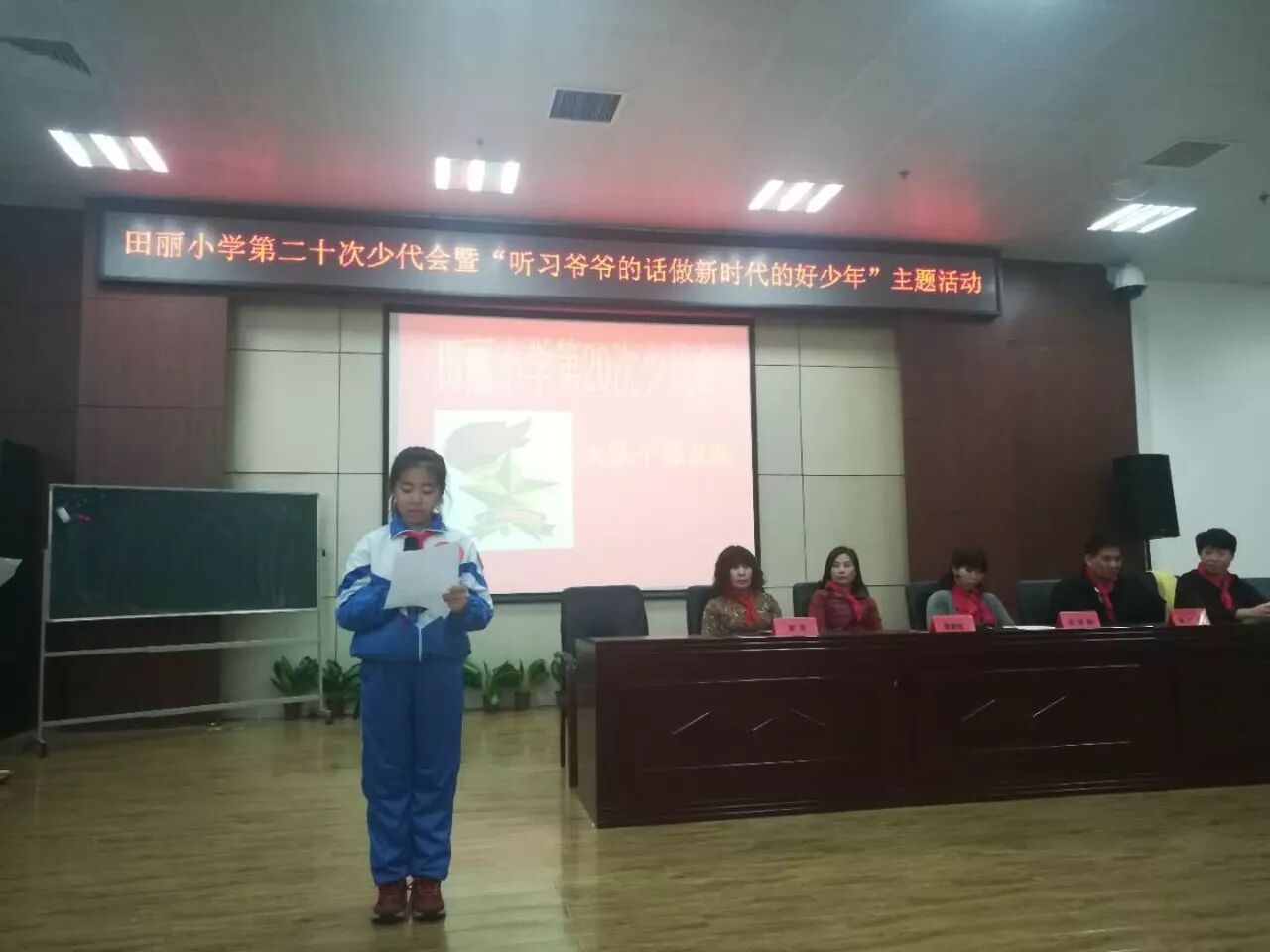正值党的十九大胜利闭幕、少先队改革方案顺利推进之时,田丽小学少先队为进一步加强少先队基层组织建设,实现少先队员自我教育、自我管理、自我服务,促进学校少先队工作向着规范化、特色化的方向发展,提高队员的能力素质,于2017年11月7日,按惯例召开了“听习爷爷的话 争做新时代好少年”第20届少代会。德育校长、大队辅导员、39名中队辅导员代表和252名优秀少先队员代表参加了会议。