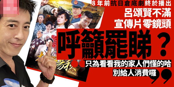 不过对于在宣传片中零镜头,吕颂贤似乎耿耿于怀,除了呼吁粉丝罢看之外,更强调:「不是我的戏」,而吕颂贤太太麦景婷就表示:「确是被『消费』了……」,网民亦纷纷留言为他抱不平:「居然一个镜头都没有太欺负人了」、「不是你的戏我不看」、「真的太过分了」、「既然没有你就不看了」。