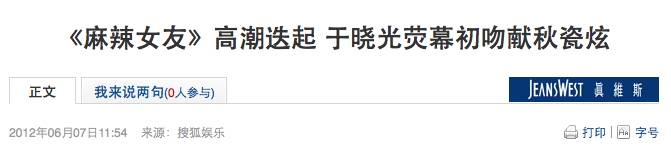在这次合作中于晓光还把自己的荧幕初吻献给了秋瓷炫。