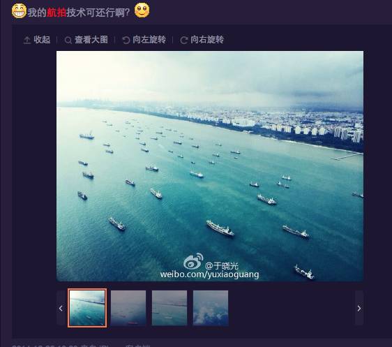 俩人的甜蜜何止这些,2014年的圣诞节那天,于晓光在微博里发了一组他的航拍作品。