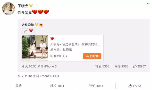 俩人岂止是般配,就连说话方式都是情侣款的,这头秋瓷炫在微博里“温习快乐”那头于晓光也在微信里“温习快乐”