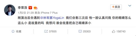 而李荣浩的首次大银幕形象就献给反派角色,似电影《教父》里的老大,烟雾吞吐之间,大佬派头十足,哪料邓超挑衅,“喂,敢不敢睁开眼睛。”被戳中命门的李荣浩立刻“崩坏”,“我已经睁到最大了!”,这个双关梗正好也呼应了李荣浩在现实里的最大特点——“小眼睛”,令人忍俊不禁 。