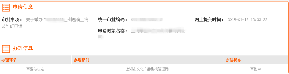 A:对于主办方来讲,首先要找一个有演出及消防备案的场地及具有报批资质的靠谱公司,通过代理准备齐全音乐人的简介、护照信息、演出曲目的歌词中英文对照、40分钟以上的现场演出及MV,接下来就坐等“XX市文化广播影视管理局”的官网上找到审批事项的申请,一旦获得相关部门的批文,就可以名正言顺地为海外音乐人办理工作签证演出了。