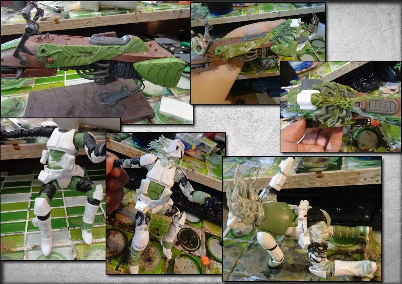 然后我们看看作者最初的构思吧,本体肯定是白兵和飞行摩托了,而且他参照了ANDY MACDOUNALD的SKETCH设计稿,然后就打算把这个给实现出来,而且是按照自己的构思来制作自己的版本,下面这3P便是制作构思过程图,大家的膝盖是不是蠢蠢欲动了~