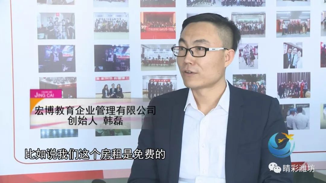 韩磊在考取了中国教练技术学院颁发的导师证之后,一直在其它的公司做培训工作,从工作开始,韩磊就有一个梦想,那就是成立自己的公司,后来了解到潍坊市大学生创业孵化中心的各项优惠政策,这正好是一个契机,韩磊一不做二不休,经过答辩和资料审核,在2017年3月韩磊成功入驻潍坊市大学生创业孵化中心,并成立了宏博教育企业管理有限公司。