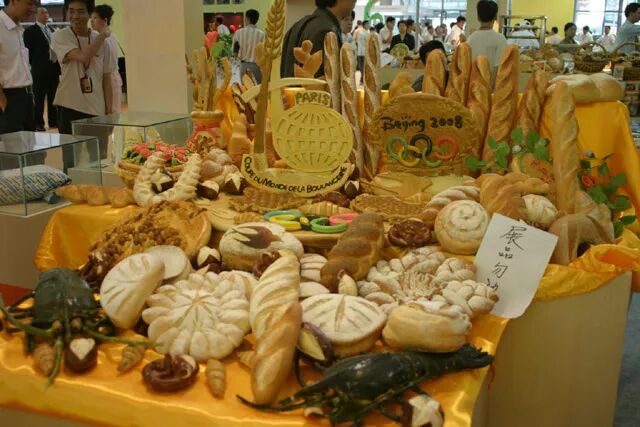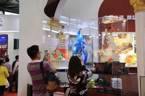 有的展位上,只是展出自家的原料,应用产品不是很多,有的呢,会出来很多产品供大家品尝,有的会有老外助阵展示高大上的技艺,有的呢,会在展会上做各种吸引眼球的推广活动。李艾比较关心厂家做出的各式面包蛋糕糕点,他喜欢看别人做出的样子,看这些有什么奇特之处。