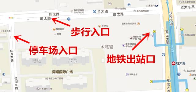 步行和乘车的顾客请从商场B馆入口进入,开车的顾客请从佳湖东路停车场入口进入。