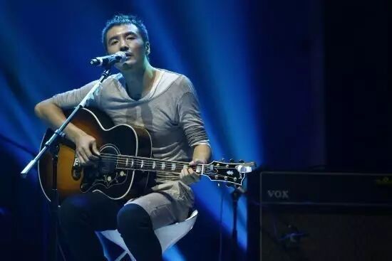 他朴实,诚恳。他穿一件圆领白T恤,袖子挽起,修长的手熟练地拨动琴弦。他剪了短发,脸庞还是那么帅得深沉,即使在岁月的洗礼下沧桑了不少,也还是遮盖不住他如孩子一般的纯真。