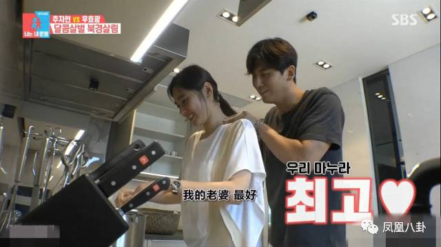 秋瓷炫做饭时,于晓光就在背后帮忙按摩: