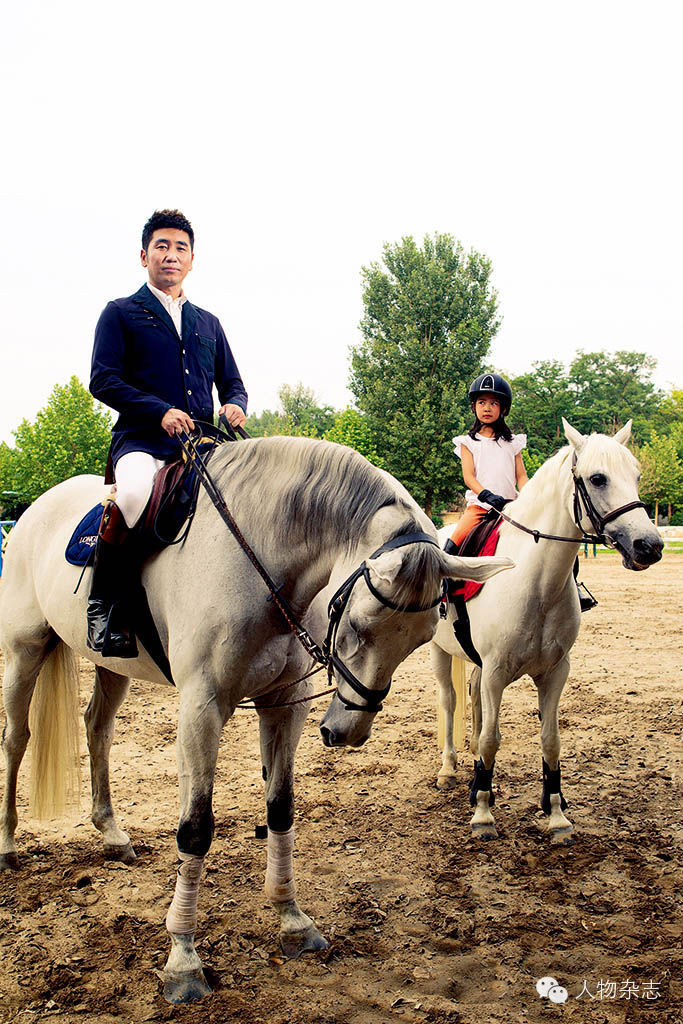 沙宝亮给女儿提供的优渥生活中,包括一匹小马驹。他骑一头高大的温血白马“将军”,女儿骑白马驹“艾拉”,父女俩在马场上像两阵白色的风。沙宝亮希望女儿亲近这种“很酷”的动物,她第一次被抱上马背时才一岁多。即便家里养着马,沙可萱并没有和同学们拉开距离,“她同学家里养马的太多了。”沙宝亮笑笑。