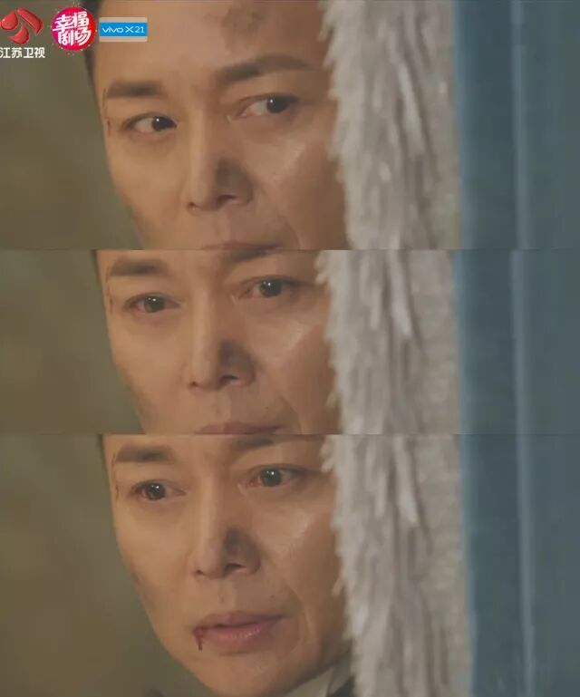 面对韩依璇时,他卸下了平日里云淡风轻的表情,近乎癫狂地逼迫着韩依璇。在整部剧中,加藤博文并不像言少白一样动作丰富、表情夸张,然而在此时,刘奕君瞬间抓住手臂、提高音量、瞪大眼睛,眼神死死锁定韩依璇,病床上的反差形象,更突出了这位日本特工的疯狂。