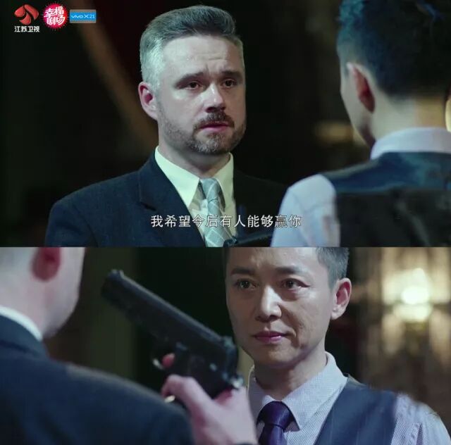 每一次较量都走在刀剑上,在枪弹纷飞中,刘奕君眼神敏锐地观察四周,在发现一些蛛丝马迹后。他的眼神戏提醒着观众,不用一句台词,都能看出这个角色的一肚子坏水。
