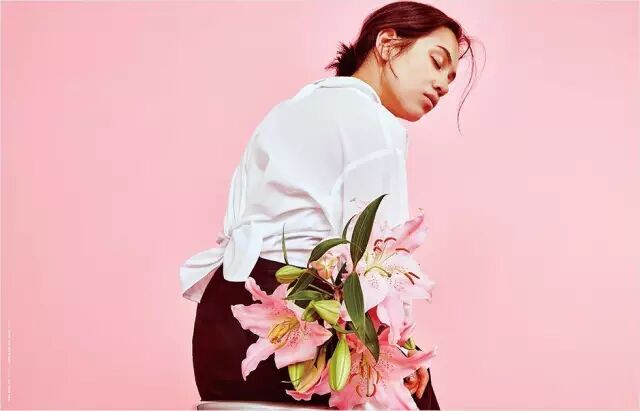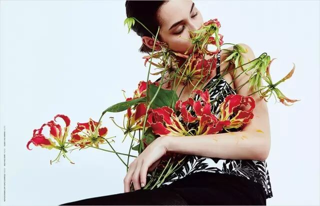 人气模特水原希子get不到的独特气质和花的组合竟然一点也不违和,呈现的是另一种味道。