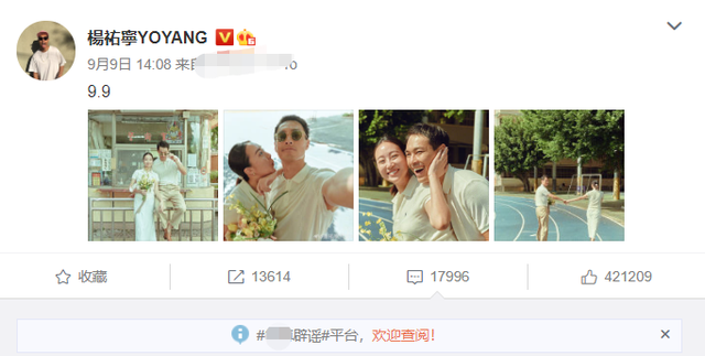 杨祐宁,一个长相帅气,身材又完美到无可挑剔的男人,本以为他不会那么早步入婚姻的殿堂,谁知杨祐宁竟在9月9日那一天官宣了自己的妻子,这个日子是特别有心的,暗示着这对小夫妻以后的婚姻生活可以长长久久,而杨祐宁的妻子也成了广大女孩羡慕嫉妒的对象。