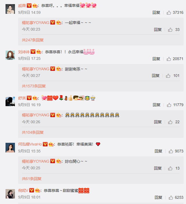 但只要人家夫妇开心幸福就好,杨祐宁已经38岁了,确实是到了步入婚姻的年纪,在他宣布结婚的那一刻,有很多明星都纷纷送上祝福了,有戚薇舒淇,刘诗诗倪妮等,圈内好友都在暖心送上祝福,而杨祐宁也是一个个都回应了,难怪人缘那么好,毕竟细节打动人心么!