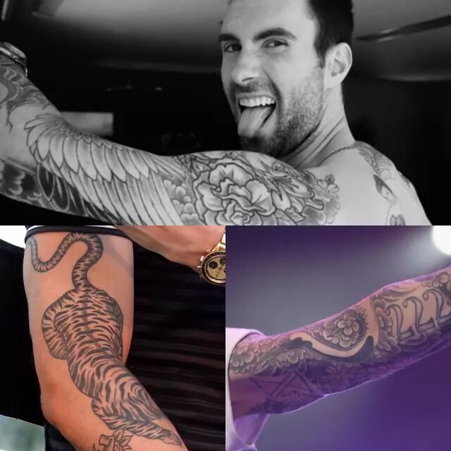 Adam Levine 的花臂图案充满了中国风元素,除了右臂一大只的老虎以外,左臂还有一只被花卉包围的丹顶鹤。看来Adam还是挺喜欢中国文化的。