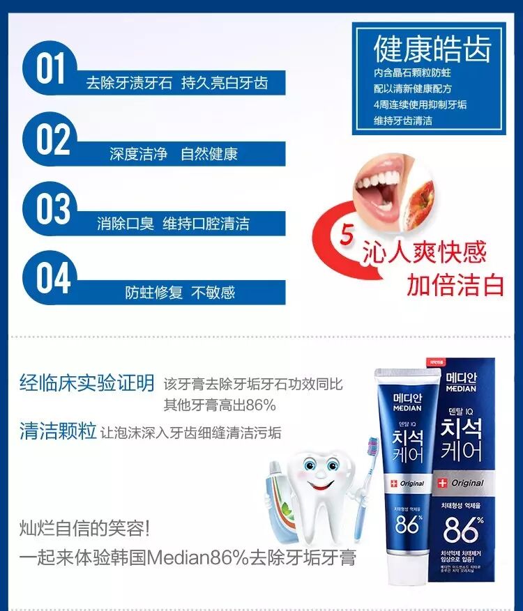 韩国正品麦迪安爱茉莉86牙膏 美白牙膏去牙结石 强效清除牙垢牙膏